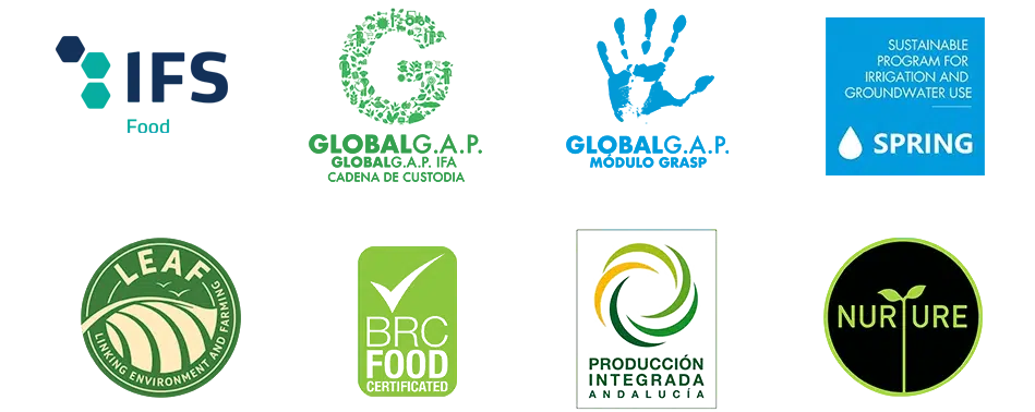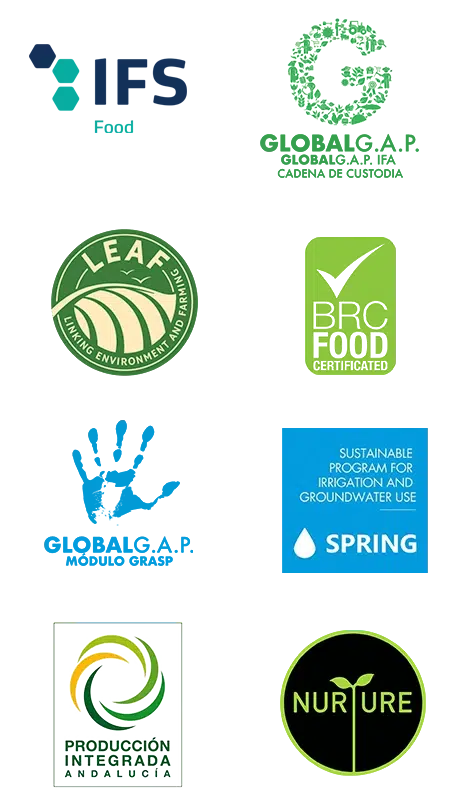 We offer fruit of the highest quality, backed by major international agricultural certifications. These seals endorse our commitment to excellence at every stage — from cultivation and harvest to packaging and export.